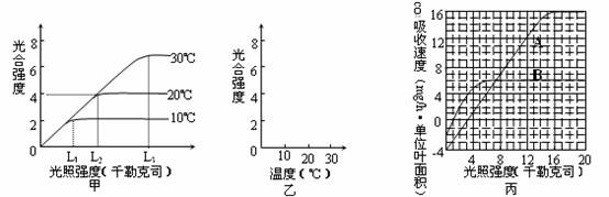 ②分析甲图,在温度为10℃、光照强度大于_______千勒克司时,光合速度不再增加。当温度为30℃、光照强度小于L3千勒克司时,光合速度的限制因素是________。当温度为25℃、光照强度等于L3千勒克司时,光合速度的限制因素是________________。