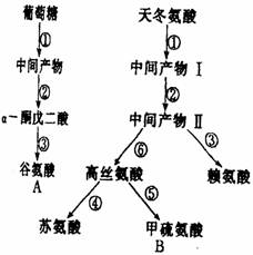 (3)若进行图B发酵的菌种,能用于工业上的赖氨酸发酵,这一菌种人们通过____________处理改变它的遗传特性,阻断______(填序号)过程,解除代谢产物对发酵过程的抑制,从而大幅度提高赖氨酸的产量。