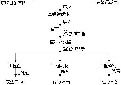 41.基因工程是在现代生物学、化学和工程学基础上建立和发展起来的,并有赖于微生物学理论和技术的发展运用。基因工程基本操作流程如下图所示,请据图回答:(每空1 分,共9分)