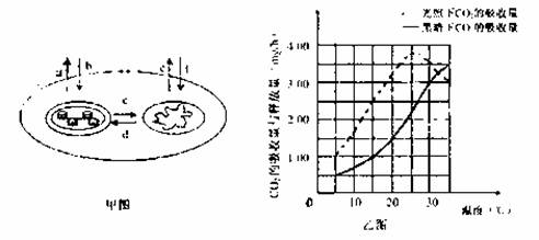 (4)以C18O2作原料进行光合作用,在乙图中35℃时,测得含18O的呼吸作用产物的主要去向对应甲图a-f过程中的 ,此时植物光合作用实际吸收CO2为 mg/h.
