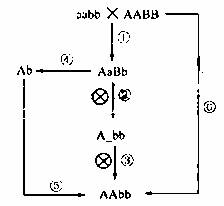 Ⅱ、假设A、b是玉米的优良基因,这两种基因是自由组合的。现有AABB、aabb两个品种,为培育出优良新品种AAbb,可以采用的方法如下图所示。请据图回答下列问题:
