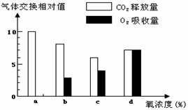 34.下图表示某绿色植物的非绿色器官在氧浓度为a、b、c、d时,CO2释放量和O2吸收量的变化。下列相关叙述正确的是( )