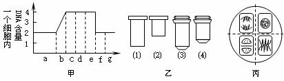 38.下面甲图表示洋葱根尖生长点连续分裂的细胞在各个时期细胞核内DNA含量的测定结果;乙图是一组目镜标有5×和16×字样、物镜标有10×和40×字样的镜头;丙图是某同学在乙图中选用的一组能放大160倍的镜头组合所观察到的图像。欲将丙图视野中处于甲图a时期的细胞移至视野中央进行640倍高倍镜观察,正确的镜头组合及操作程序应是( )