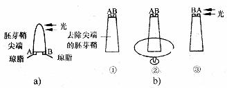 12.下图a所示为燕麦胚芽鞘所做的处理,那么一段时间后,图b中①②③在图示位置时,其生长情况依次是