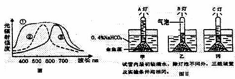 现需从中选择一种灯泡用于温室中给植物补光,期望最大限度地增加光合作用的强度。为此某同学设计了图II所示的实验装置。回答下列问题:(注:叶绿体中的色素主要吸收430~450nm的蓝紫光和640~660nm的红光。)