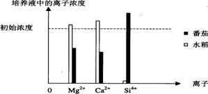 2.(8分)有人做过这样的实验:将水稻和番茄分别放在含Mg2+、Ca2+、和Si4+的培养液中培养,一段时间后,番茄培养液中的Mg2+和Ca2+浓度下降,水稻培养液中的Mg2+和Ca2+浓度增高。Si4+的情况刚好相反:水稻吸收大量的Si4+而番茄几乎不吸收Si4+。如下图所示: