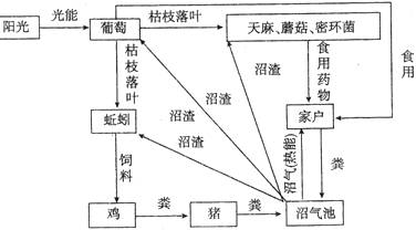 28.有位农民在自家庭院里搞了一个小生态农业,使0.25亩的庭院创收了几万元。其物质和能量流动如下图所示,下列对该系统的叙述中不正确的 ( )