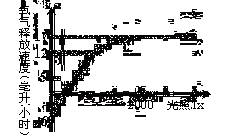 22.下图表示在不同光照强度下,某植物的氧气释放量。该植物在2000Lx(勒克司)的光照强度下,每小时光合作用所产生的氧气量(毫升)是 ( )