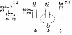 28.下图左侧为燕麦胚芽鞘所做的处理,那么一段时间后,右侧①②③在图示位置时,其生长情况依次是 ( )