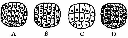 1.若用同一显微镜观察同一标本4次,每次仅调整目镜或物镜和细准焦螺旋,结果得下面各图,试问其中视野最暗的是 ( )