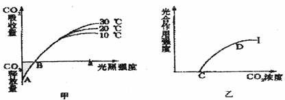 C.乙图中曲线CD段说明在一定范围内,随着CO2浓度的升高,光合作用逐渐加强,I 曲线所代表的植物体内固定CO2的物质是C3和C5