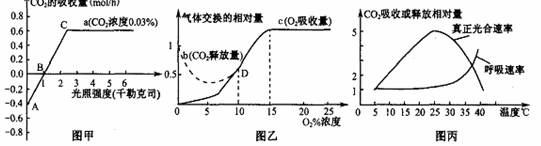 (2)影响图甲中a曲线A点上下移动的主要外界因素是__________________;图乙中细胞呼吸有关曲线的数据在氧气浓度为___________时细胞即进行有氧呼吸又进行无氧呼吸。
