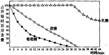 II.(14分)用含蔗糖、葡萄糖和乳糖作碳源的固体培养基培养大肠杆菌,随着培养时间的延长,培养基中3种糖类物质含量变化如图所示。请分析回答: