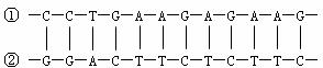 由该基因片段控制合成的多肽中,含有“-脯氨酸-谷氨酸-谷氨酸-赖氨酸-”的氨基酸序列(脯氨酸的密码子是CCU、CCC、CCA、CCG;谷氨酸的是GAA、GAG;赖氨酸的是AAA、AAG)。则翻译上述多肽的mRNA是由该基因的 链转录的(以图中的①或②表示)。此mRNA的碱基排列顺序是 。
