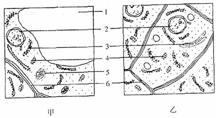 (1)具有细胞周期的是图 ;若将两种细胞分别置于0.3g/ml蔗糖溶液中,则能发生质壁分离现象的细胞是图 ,图中结构[ ] 起重要作用。([ ]中填标号)