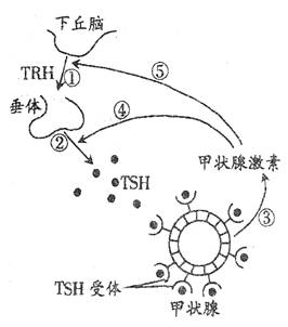 (2)碘是合成甲状腺激素的原料,人体长期缺碘将会导致甲状腺增生(俗称大脖子病),这是图中哪些过程分别发生什么变化的结果?此现象体现了TSH具有哪种功能?