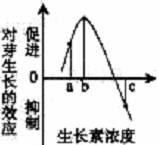 23.下图表示不同浓度生长素对芽生长的影响。当植物表现出顶端优势时,顶芽和最靠近顶芽的侧芽所含生长素的浓度依次分别为 ( )