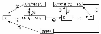 33.(6分)下图是生态系统中氮循环、碳循环、硫循环及其相互关系的简图,请仔细分析后回答下列问题: