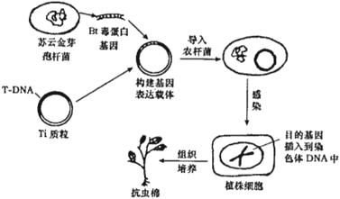 科学家通过基因工程成功培育出能抗棉铃虫的棉花植株-抗虫棉,其过程大致如下图所示:
