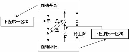 ⑴ 图中甲、乙分别表示 (结构),A、B、C分别表示 (激素)。