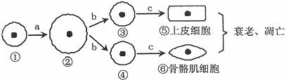 4.下图为人体细胞的分裂、分化、衰老和凋亡过程的示意图,图中①一⑥为各个时期的细胞,a-c表示细胞所进行的生理过程。据图分析,下列叙述正确的是