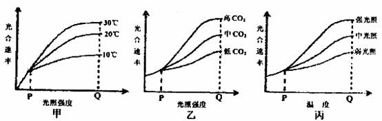 31.(22分,每空2分)甲、乙、丙三图分别表示几个环境因素对小麦光合作用速率的影响,除各图中所示因素外,其他因素均控制在适宜范围。请据图回答以下问题: