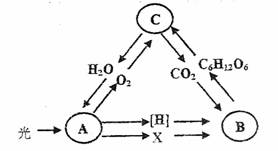 9.下图为绿色植物体内某些代谢过程中物质变化的示意图,A、B、C分别表示不同代谢过程。以下表达正确的是 ( )