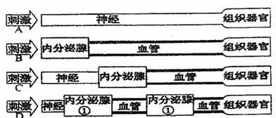 14.下图表示高等动物四种不同生理调节过程,当饮水不足,体内水平衡的调节方式属于