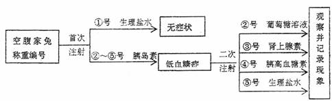 18.如下实验流程为探究血糖调节的影响因素,实验中5只家兔的注射剂量和生理指标均按单位体重计算。下列叙述不正确的是 ( )