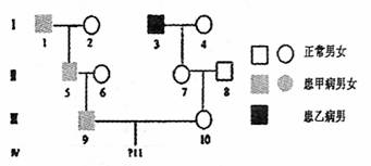 材料III 绘制甲病和乙病在某一家族中的系谱图(见下图)。(甲、乙病分别由核基因A和a、B和b控制)。