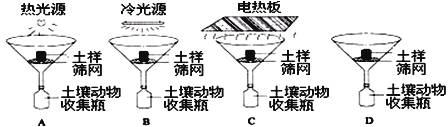 5.土壤动物具有趋暗、趋湿、避高温的习性,下图A、B、C、D4种土壤微型节肢动物分离收集装置中,最合理的是 ( )