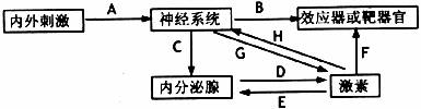 C.人在寒冷的条件下,可以通过“内外刺激→A→C→D”,使肾上腺素分泌增加