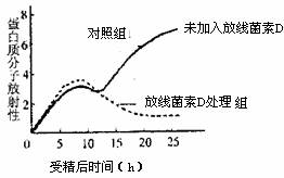3.已知放线菌素D是RNA合成抑制剂。下图是根据海洋动物海胆受精卵在有放线菌素D 和无放线菌素D存在情况下培养时,对14C 标记的缬氨酸参与蛋白质合成的实验结果绘制的曲线图。下列叙述错误的是 ( )