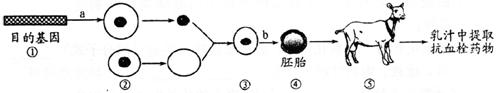 2009年2月6日,美国首次批准了一种从转基因山羊乳汁中提取的抗血栓药物上市,下图表示利用转基因山羊生产抗血栓药物的过程。请回答: