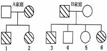 20.下图是A、B两个家庭的色盲遗传系谱图,这两个家庭由于某种原因调换了一个孩子,请确定调换的两个孩子是 ( )