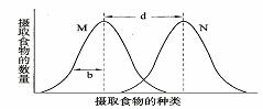 8.下图为某一区域M、N两物种的资源利用曲线(纵横坐标分别表示被M、N两个物种所 摄取的食物数量和种类),其中表述正确的是 ( )