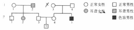 5.已知人的红绿色盲属X染色体隐性遗传,先天性耳聋是常染色体隐性遗传(D对d完全显性)。下图中Ⅱ2为色觉正常的耳聋患者,Ⅱ5为听觉正常的色盲患者。Ⅱ4(不携带d基因)和Ⅱ3,婚后生下一个男孩,这个男孩患耳聋、色盲、既耳聋又色盲的可能性分别是