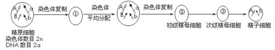 19.下图为精原细胞增殖以及形成精子过程示意图。图中标明了染色体与染色体上的基因。设①③细胞都处于染色体的着丝点向两极移动的时期。据图分析,下列叙述不正确的是 ( )