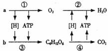 9.下图表示绿色植物叶肉细胞内发生的光合作用和有氧呼吸的过程,图中a、b为光合作用的原料,①-④表示相关过程,下列有关叙述不正确的是
