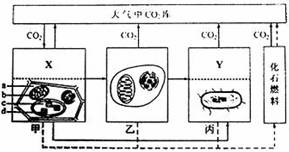(3)大气中的CO2在甲中图示的_________处(在a~d中选择)合成有机物;含碳有机物在甲中图示的____________处(在a~d中选择)可以分解为CO2。