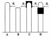 40.下图是进行胚芽鞘向光性实验的示意图。将种植在同一条件下,同一时期的燕麦幼苗分别进行如下处理:A处于自然条件下;B切去胚芽鞘尖端;C在胚芽稍尖端上罩上黑纸罩;D在胚芽稍尖端以下套上黑纸筒。然后从暗处取出一起放至窗台,使光线从单侧照射,试分析: