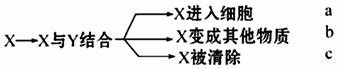 10.a、b、c表示生物体内的三个生理过程,如图所示的三个过程中Y代表的物质和特征分别是