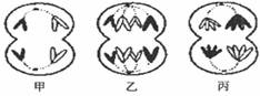 8. 下图中的甲、乙、丙表示动物细胞有丝分裂过程中的三个阶段,a是染色体数,b是染色单体数,c是DNA分子数。其中a、b、c三者的数量关系正确的是 ( )