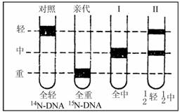 (2)将第一代(I)细菌转移到含15N的培养基上繁殖一代,将所得到细菌的DNA。用同样方法分离,请参照上图,将DNA分子可能出现在试管中的位置在下图中标出。