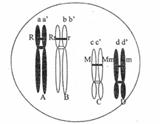 32.(12分)下图为某二倍体高等动物细胞示意图,其中A、B、C、D代表四条染体,其上分别有基因R、r、M、m,请据图回答: