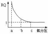 32、呼吸熵(RQ=放出的CO2量/吸收的O2量)可作为描述细胞呼吸过程中氧气供应状态的一种指标。下图是酵母菌氧化分解葡萄糖过程中氧分压与呼吸商的关系,以下叙述正确的是 ( )