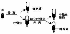 21.为了研究光合作用,生物小组的同学把菠菜叶磨碎,分离出细胞质基质和全部叶绿体。然后又把部分叶绿体磨碎分离出叶绿素和叶绿体基质,分别装在四支试管内,并进行光照。问哪一支试管能检测到光合作用的光反应过程。 ( )