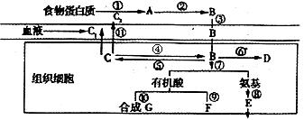 26.下图为哺乳动物体内蛋白质代谢示意图,图中数字代表生理过程,字母代表物质名称。据图回答正确的是 ( )