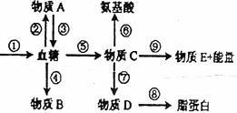28.下图表示人体内的部分物质代谢(其中物质E代表一种或两种物质)。下列有关叙述,正确的是 ( )