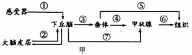 33.(8分)下图甲表示人和高等动物部分神经调节与体液调节过程。乙表示神经传导过程中电位的变化,据图回答: